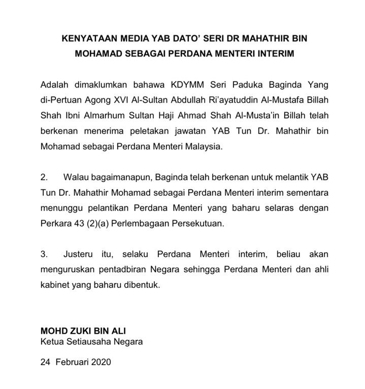 Agong Lantik Semula Tun Mahathir Jadi Perdana Menteri Sementara